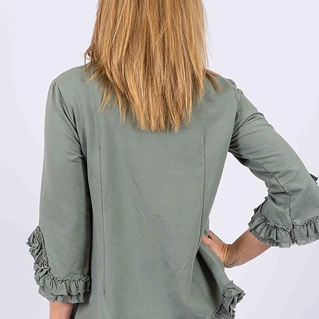 Rala soft tailored cut jacket with frilled trimming and a self tie giving a great cut for wearing over dresses and tops.