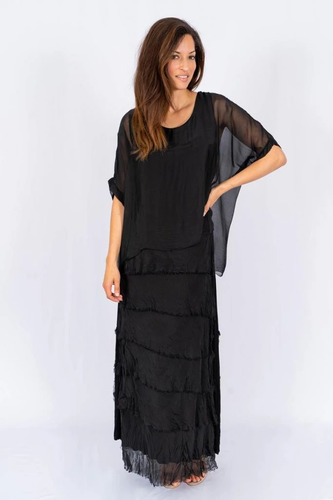 Ladies if you love fashion this dress is for you!!! with a little soft femininity, the Rowena dress is jaw dropping, dress features silk tiered raw cut detail in the skirt, with a silk soft top & a cotton Jersey underlay for comfort.