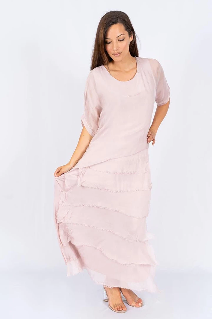 Ladies if you love fashion this dress is for you!!! with a little soft femininity, the Rowena dress is jaw dropping, this dress features silk tiered raw cut detail in the skirt, with a silk soft top & a cotton jersey underlay for comfort.