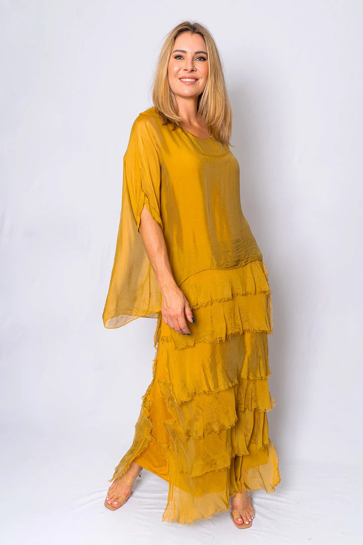 Ladies if you love fashion this dress is for you!!! with a little soft femininity, the Rowena dress is jaw dropping, this dress features silk tiered raw cut detail in the skirt, with a silk soft top & a cotton jersey underlay for comfort.