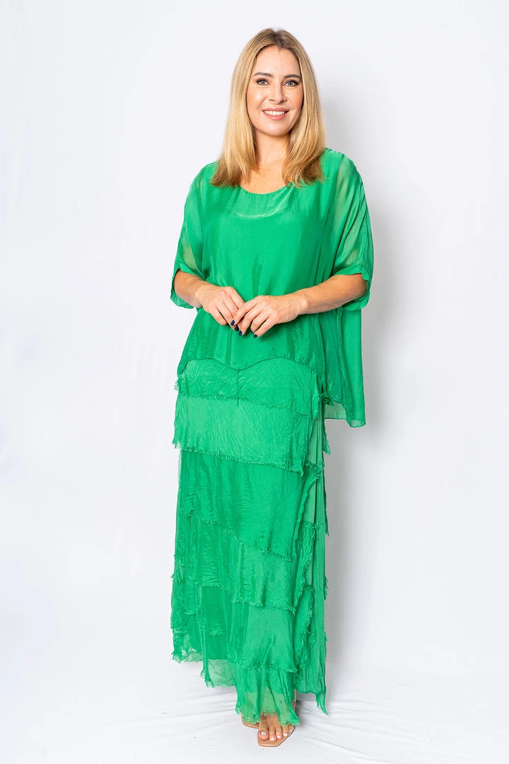 Ladies if you love fashion this dress is for you!!! with a little soft femininity, the Rowena dress is jaw dropping, dress features silk tiered raw cut detail in the skirt, with a silk soft top & a cotton underlay for comfort.