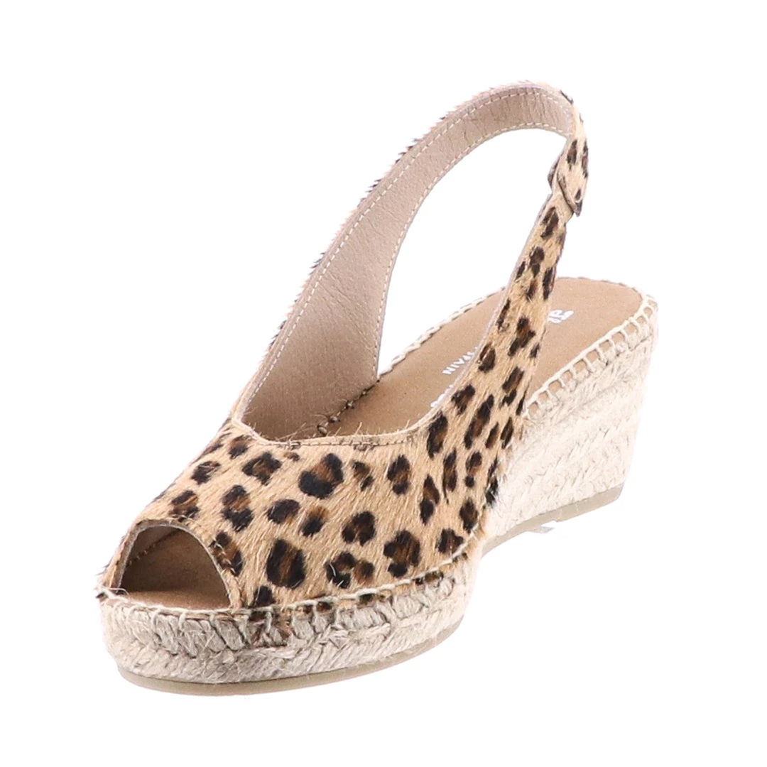 The ideal summer slip on is here- and this year it looks like a wedge espadrille! Brought to you all the way from Spain, the Belinda Espadrille Wedge in Leopard Print by The Natural Shoe Company flaunts a beautiful rope woven espadrille platform with a pony hair leopard print open toe, sling back design. Wear them as a casual day-to-day shoe or for your next outstanding occasion!