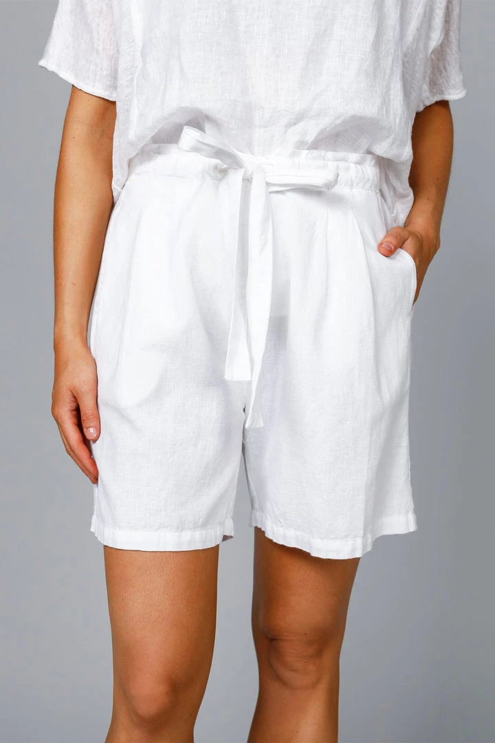Light, comfortable and care free- three goals for your Summer weather wardrobe! The Dickens Shorts in fresh White linen by The Shanty Corporation are perfect for your adventure weekends and weekday errands! The crisp white linen is versatile and the mid thigh finish leaves you unrestricted. Pockets, a tie waist and a beautiful natural fibre – you’ll never now comfort like this again!