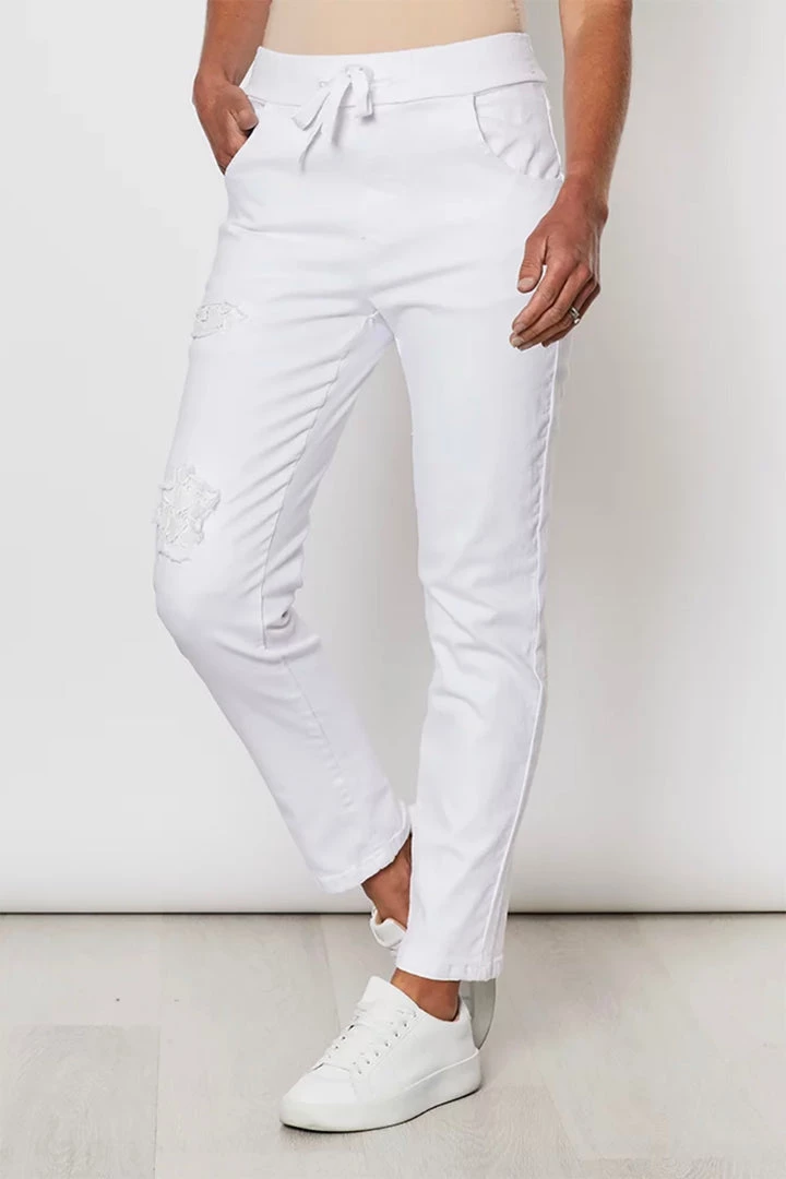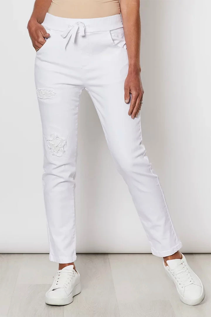 These super comfortable easy pull on stretch pants are your new favorite pants and we can guarantee that, with a tie waist band, front side pockets & back pockets , slim through the legs.