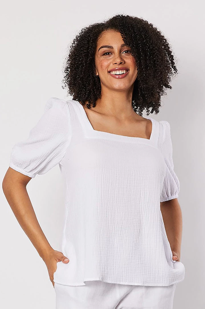 Threadz Tops Square Neck Cotton Top | White | TZ13s