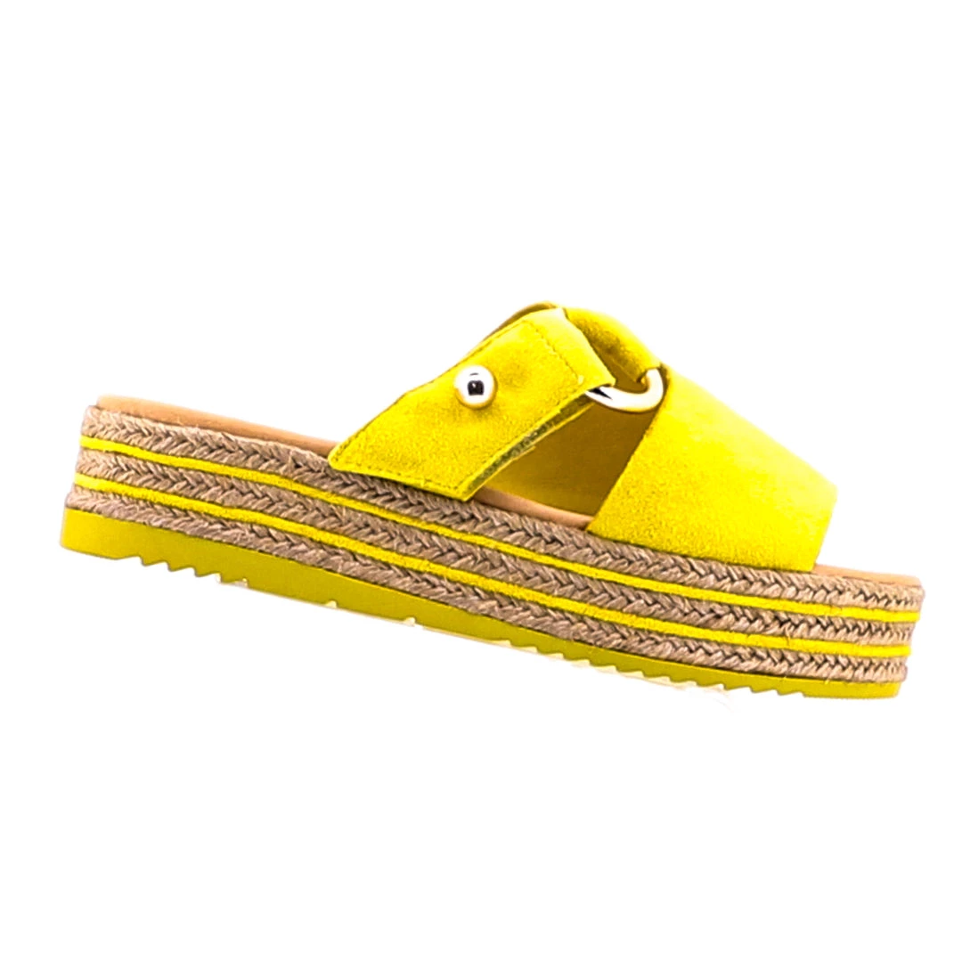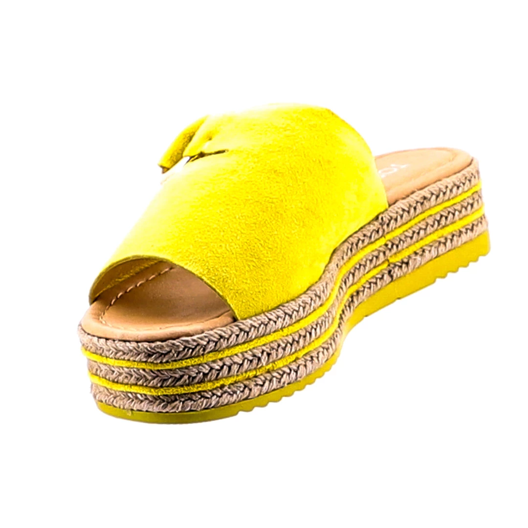 Retro with a touch of coastal charm, the About To Suede Platform Slide in Yellow by Top End Shoes are a boutique balance of old and new! With the retro inspired platform and juicy yellow suede, these sliders have a timeless air about them. Made thoroughly modern with the espadrille sole and ring detail, these Top End shoes are a refreshing addition to any outfit!