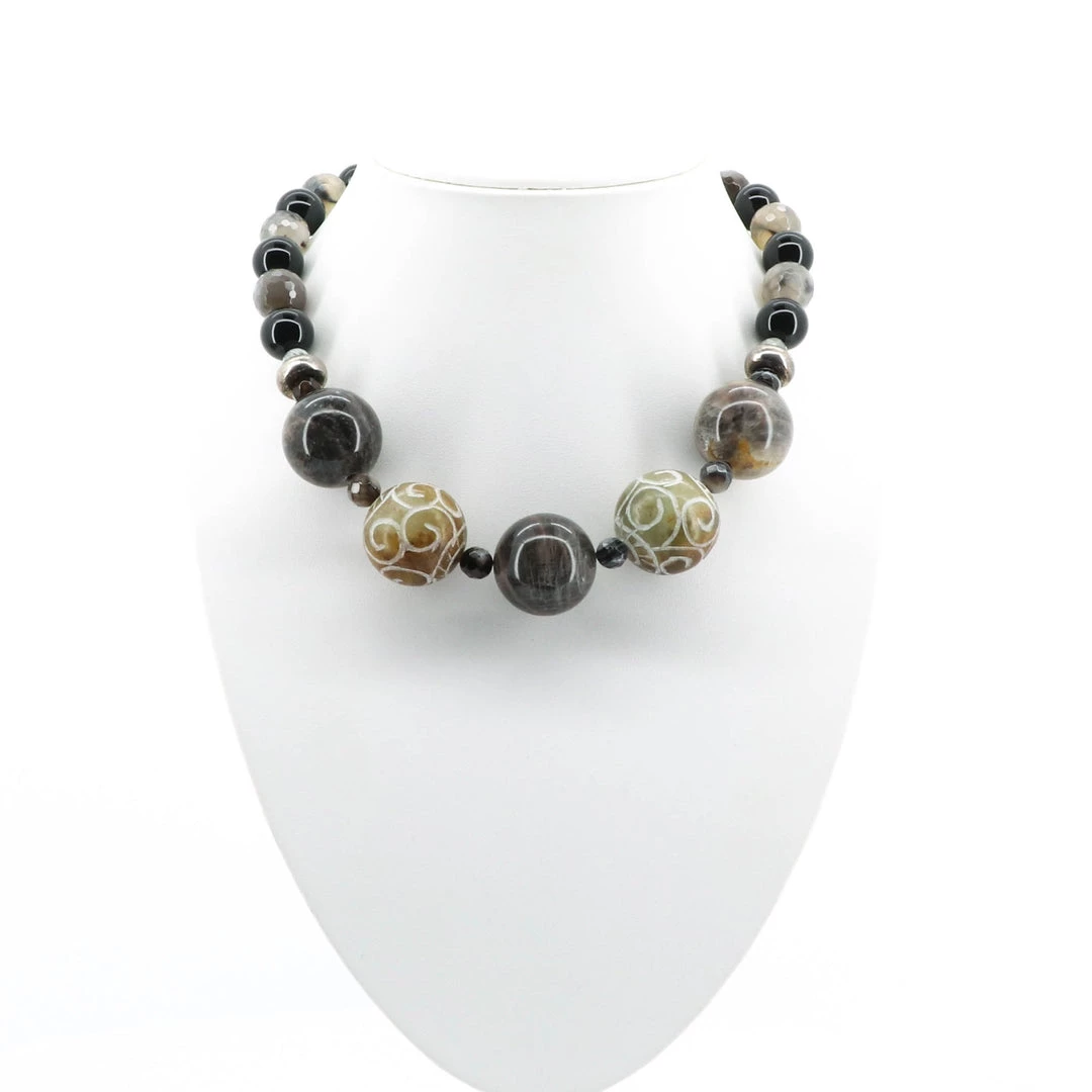 Tune into the most spectacular gifts of the earth with this amazing natural beaded necklace by Touche’! The carved beads add a sweet uniqueness to this statement accessory- a piece you don’t want to miss!