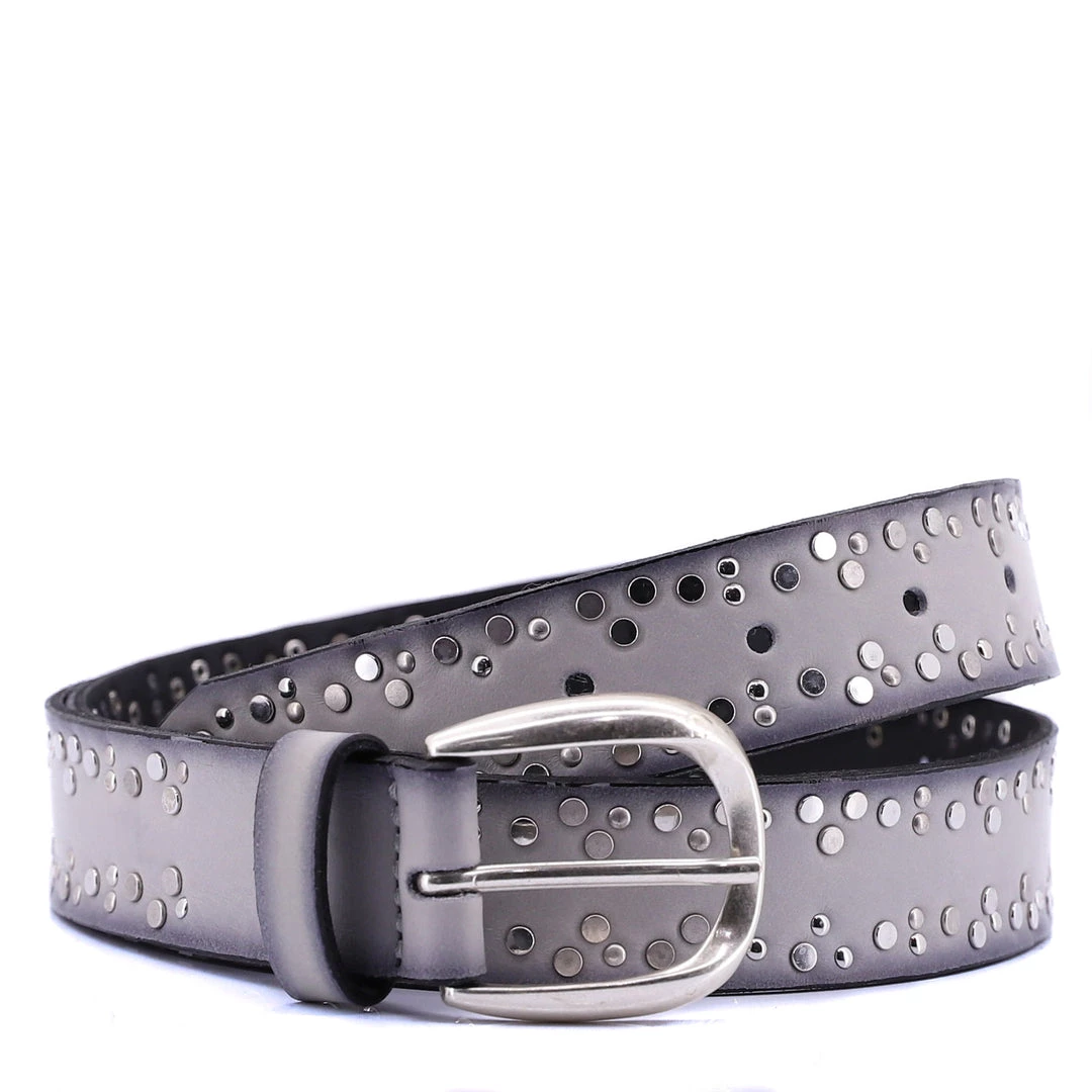 Made in Germany from genuine leather, this Skinny Mixed Rivets Belt in Light Grey by Vanzetti is the ideal accessory to any outfit!