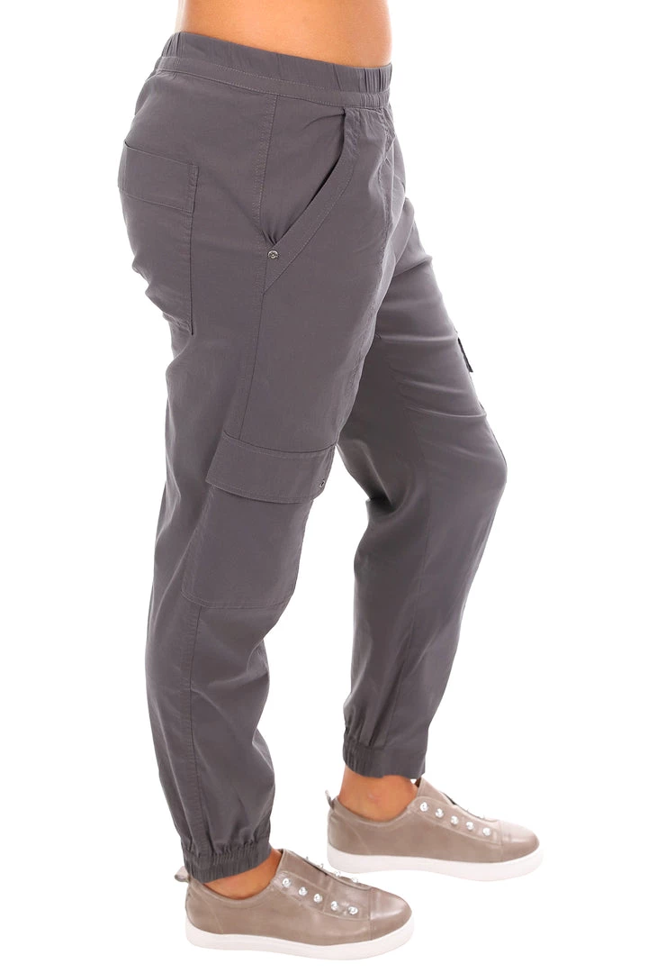 These stretch fit pants are a great option. They are an easy wear pant that will fast become one of your wardrobe favourites. They also offer a great fit! You can’t go past a grey pant this fashion season it tones well with the current fashion colours. These pants offer a great style with an elastic cuff at the hem and slash pockets in a neat fitting pull on style. These pants are great for work or casual occasions. Team these with a leather sneaker and a bright casual knit top for a great fashion look.
