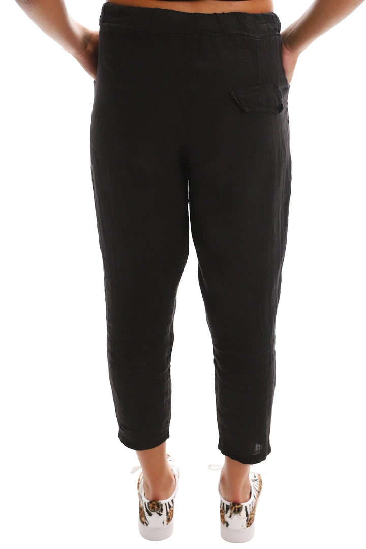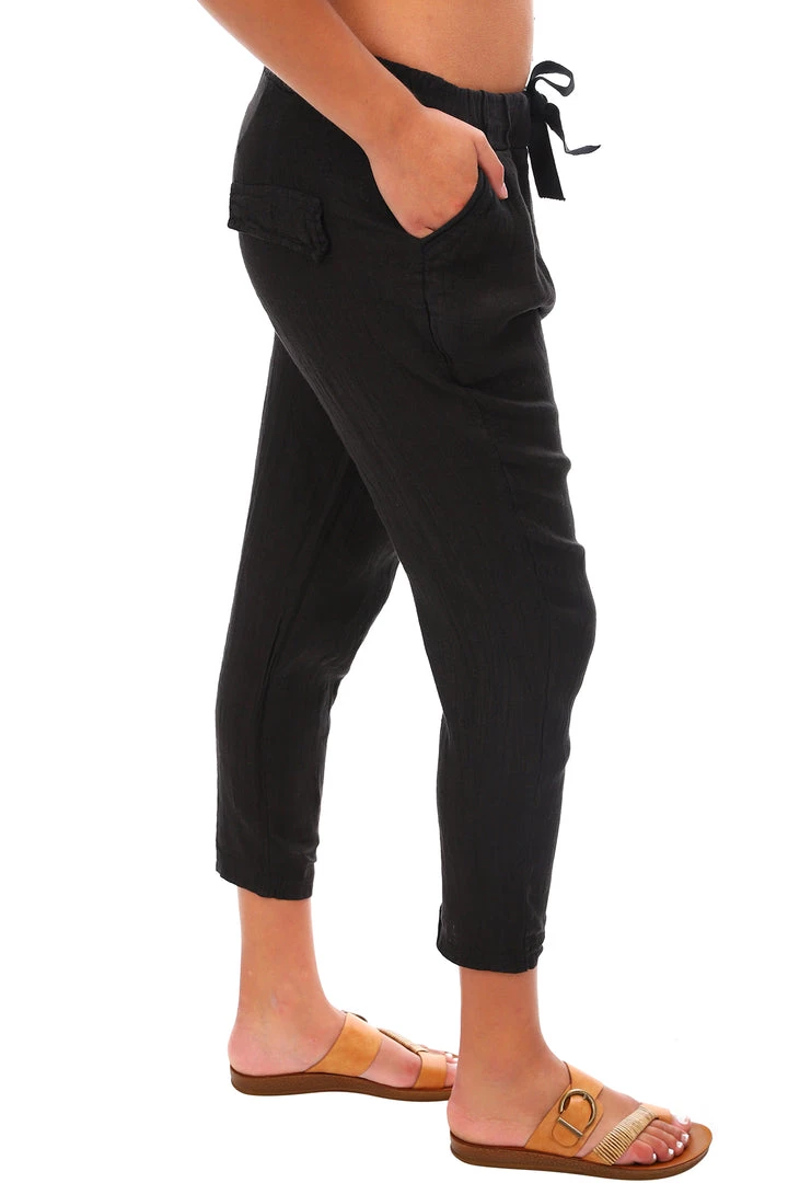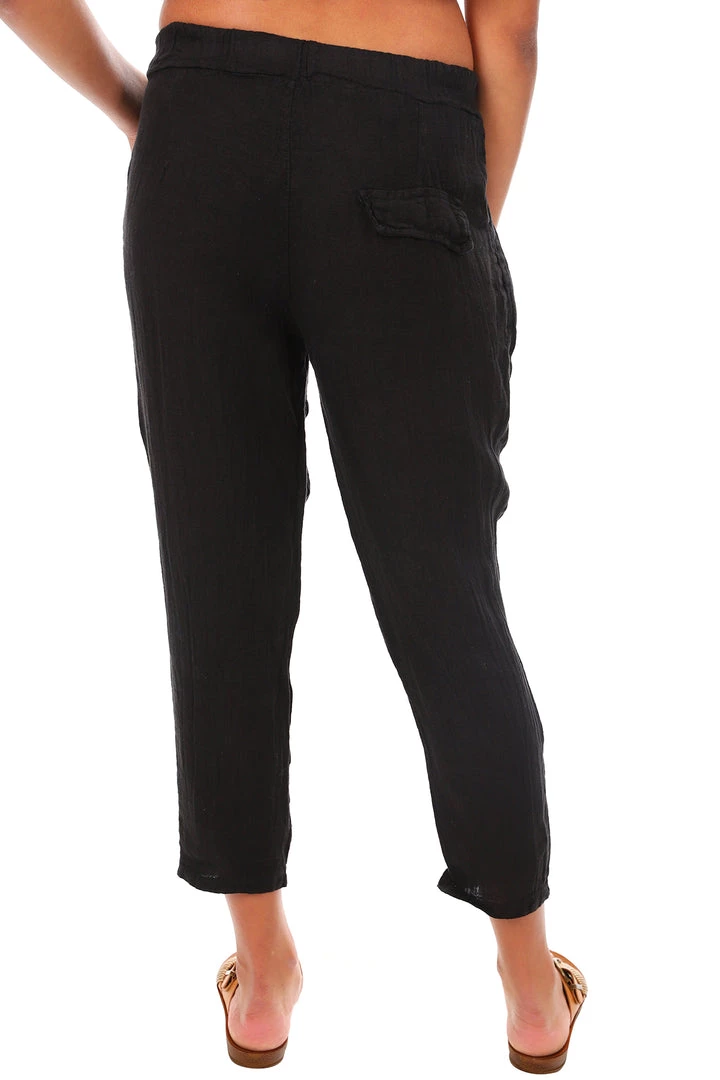 Wednesday Lulu’s Ellie Linen Pants are a great basic that will see you cool and comfortable all day long. The long tapered legs make these pants a more tailored look. They feature an elastic drawstring waist, and false fly – there is also a false rear pocket flap making these linen pants a great option for casual days.