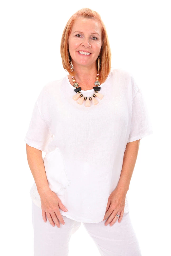 TheĀ Side PanelĀ Linen TopĀ inĀ whiteĀ by Wednesday LuluĀ is here to lift your wardrobeĀ to a higher level! With an effortless relaxed fit, round neckline,Ā roll up sleevesĀ and a delightful raw linen bandĀ on the sideĀ to add detail! The simplicityĀ of thisĀ whiteĀ linen top makes this piece a winner!