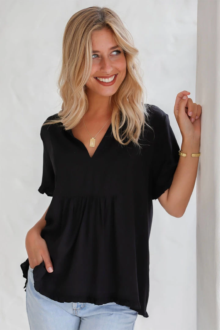 This little black top is 100% Rayon, soft and cool it has a v plunge on neckline and has a soft sheered sleeve, the length is perfect for us ladies that life just a little bit more coverage around the hip area.  The size XL will fit a 18 lady.